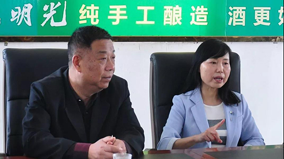 王主席一行,先后參觀了明酒地下壇庫區(qū)、地下池庫區(qū),在釀酒車間工會活動室。明酒黨委副書記龐宗生匯報了明酒近年來品質(zhì)升級、品牌升級、服務(wù)升級的整體狀況;介紹了“2019年明光酒業(yè)國慶、廠慶70周年”系列活動籌備情況。工會主席趙玉龍就明酒工會組織建設(shè),職工維權(quán)及提升職工幸福指數(shù),融入企業(yè)中心工作,助推明酒生產(chǎn)經(jīng)營等方面進行了匯報。