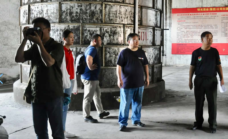 2019年6月13日,資深媒體人、美食、美酒、書評專欄作家朱學東,北京城脈研究院院長蔣晨明,鳳凰網安徽政務三部總監魏明名、鳳凰網安徽總編輯助理宋吾能等大咖一行7人,在明光酒業總經理鞏建、黨委副書記龐宗生,黨群部部長錢軍陪同下參觀考察明光酒業。