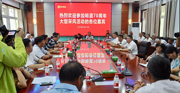 在明光酒業水上會議室,王振爽董事長介紹了明酒的歷史演變及幾代明酒人的故事;匯報了明酒廠慶70周年啟動儀式發布的五大系列活動等。明光市文聯主席任亞弟發表精彩講話。