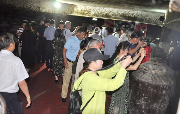 為使“活動”扎實有效開展,7月13日,由明光酒業、滁州市散文家協會、明光作家協會組織,邀請滁州市各縣市區作家協會會員,蒞臨明光酒業舉行文學采風活動。安徽省散文家協會副主席、滁州市作家協會主席宮開理、安徽省散文家協會副主席、明光市作家協會主席傅守乾,安徽省散文家協會副秘書長、滁州市散文家協會常務副會長貢發芹,滁州市散文家協會副主席魏來安、邵化成、左神州,滁州市散文家協會秘書長王剛及滁州各縣(市、區)作家、詩人、一行70余人蒞臨明酒。在明光酒業黨委副書記龐宗生、工會主席趙玉龍引導陪同下,聽取了老明光美酒的繁雜釀造過程,一睹尋常不對外開放的地下壇庫區的神秘面紗。詩人們在地下酒庫群壇間吟詠著明酒的文化積淀,作家們在500噸不銹鋼罐群旁,驚嘆著海量原酒的壯觀,看到明酒廠區徽派建筑群與花園式工廠,讓大家流連忘返。