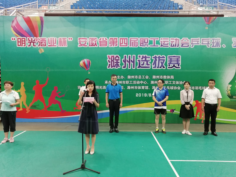8月6日,安徽省第四屆職工運動會乒乓球、羽毛球-滁州地區選拔賽在滁州市體育館隆重舉行。本次比賽由滁州市總工會、滁州市教體局主辦,安徽明光酒業有限公司協辦。來自各縣(市、區)以及市直相關基層工會的選手近900人參加比賽。