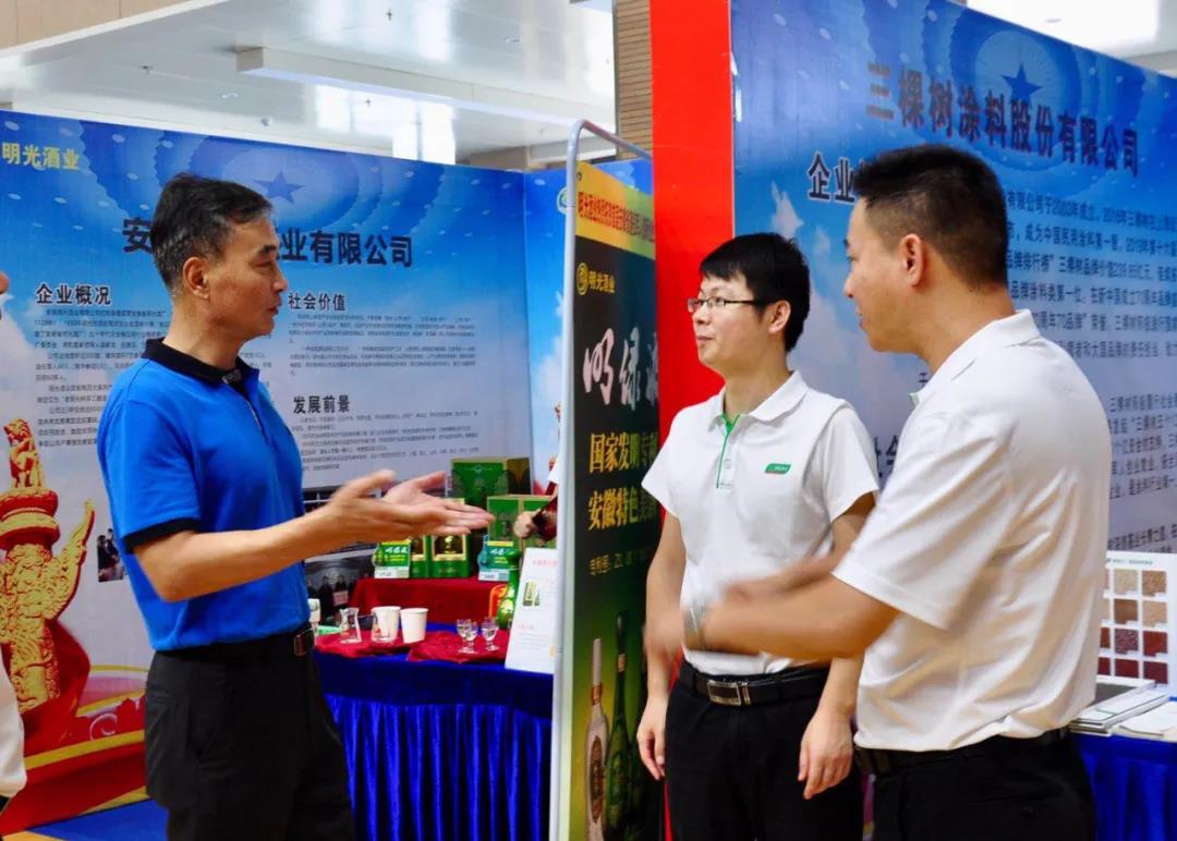 2020年8月28日上午明光酒業(yè)參與“安徽省退役軍人創(chuàng)業(yè)創(chuàng)新大賽” 產(chǎn)品展示。明光酒業(yè)總經(jīng)理鞏建、黨委副書記龐宗生,現(xiàn)場(chǎng)指導(dǎo)明光酒業(yè)展位設(shè)計(jì)與布局,為參與大賽的創(chuàng)業(yè)人員展示明酒產(chǎn)品。