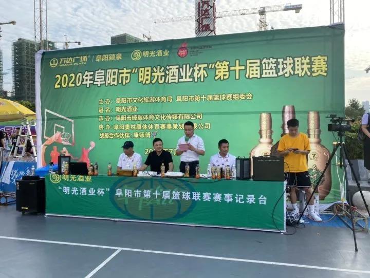 2020年7月25日下午由阜陽市籃球聯賽組委會與安徽明光酒業有限公司主辦的“2020年明光酒業杯阜陽市第十屆籃球聯賽”在阜陽市潁泉萬達廣場1號門籃球場內順利開幕。阜陽市籃球聯賽主席姚峰,籃球聯賽總裁判員鄭亞偉,安徽明光酒業有限公司銷售公司總經理劉邦出席了開幕式。