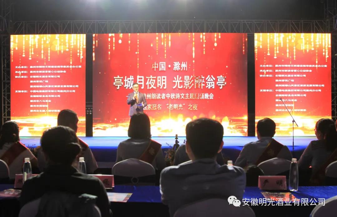 作為一家具有70余年歷史的企業,明光酒業一直熱衷于公益事業。身為2020滁州朗讀者中秋詩文主題朗誦晚會的協辦者,安徽明光酒業有限公司特別參與了第三篇章“月下酌吟”的朗誦,展示了作品《明光酒賦》和《明光月 明光酒》。