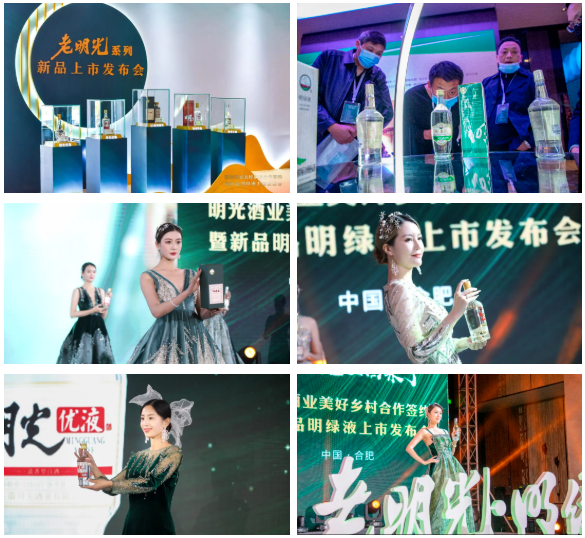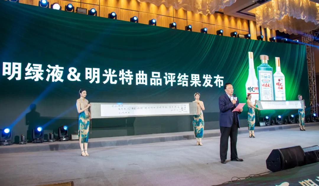 活動中,明光酒業重磅發布五款新產品,分別為明光佳釀、明光大曲、明光優液、明光特曲、53度明綠液。