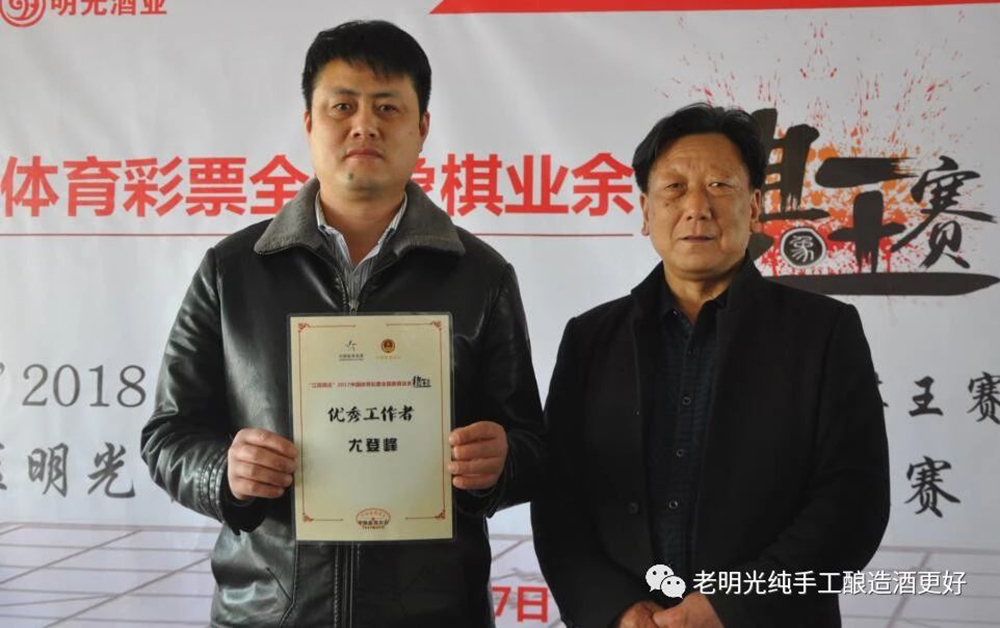 7日下午4點,本屆預選賽明光“棋王”出爐,冠軍董雙平將代表明光市參加省“棋王”賽。頒獎儀式上,滁州象棋協會秘書長呂根生代表中國象棋協會向明光象棋協會會長尤登峰頒發“優秀工作者”證書。