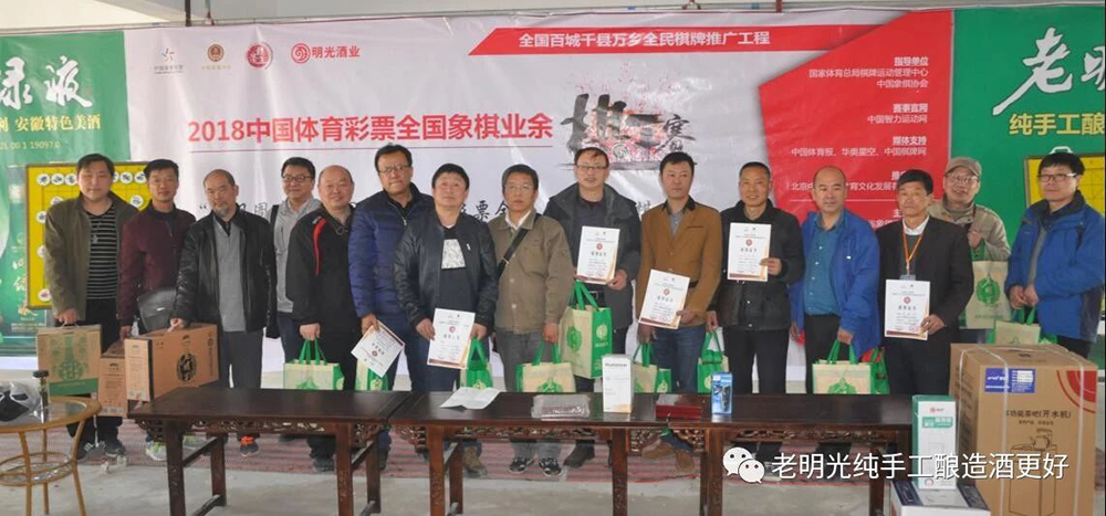 全國象棋業余“棋王賽”安徽賽區明光市“明光酒業杯”預選賽,于2018年4月6在明光棋院開幕。此次選拔賽由國家體育總局棋牌運動管理中心、中國象棋協會指導,由安徽省象棋協會、安徽省棋院主辦,明光市象棋協會承辦,滁州市象棋協會、明光棋院協辦,明光酒業冠名。