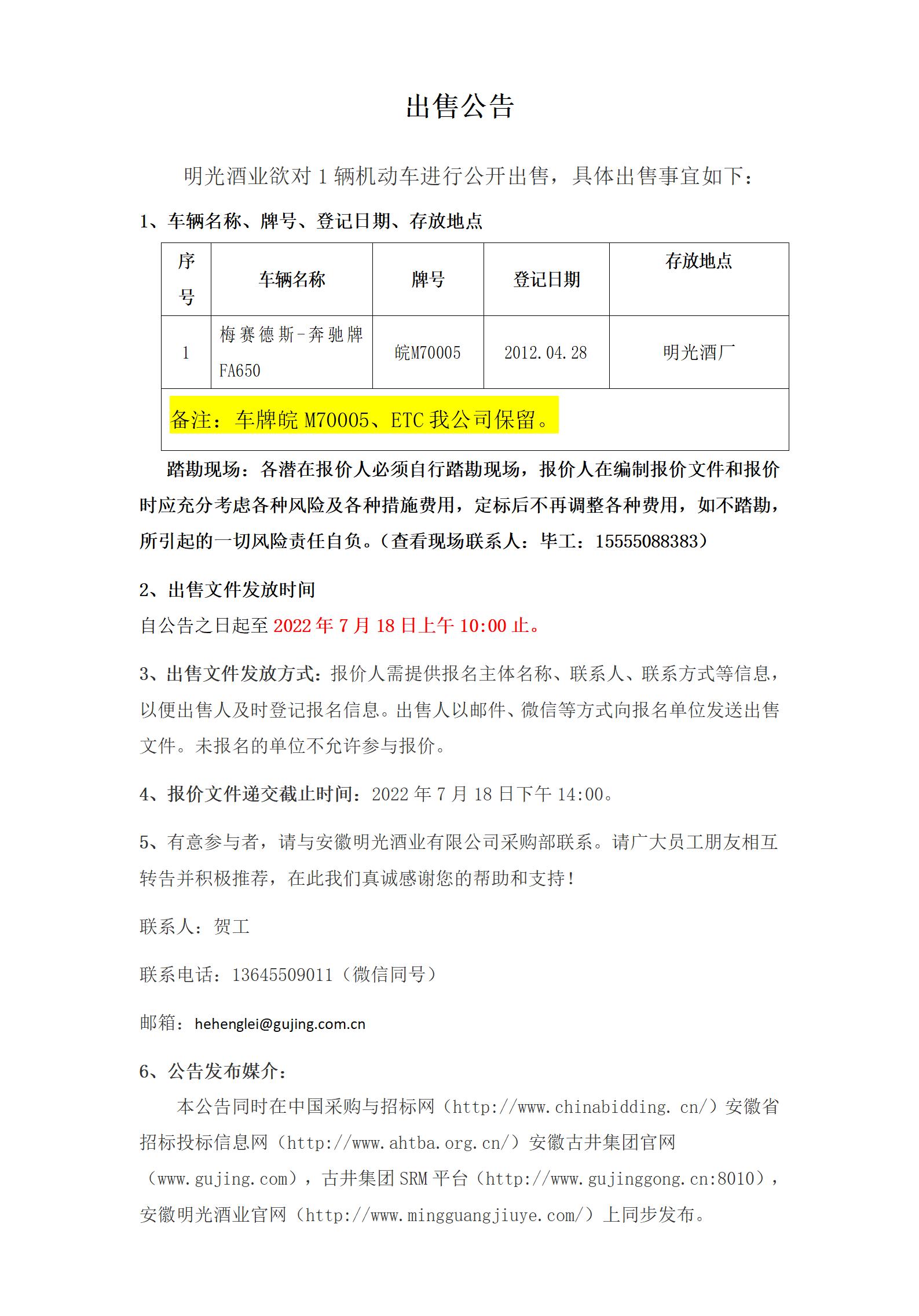 出售公告