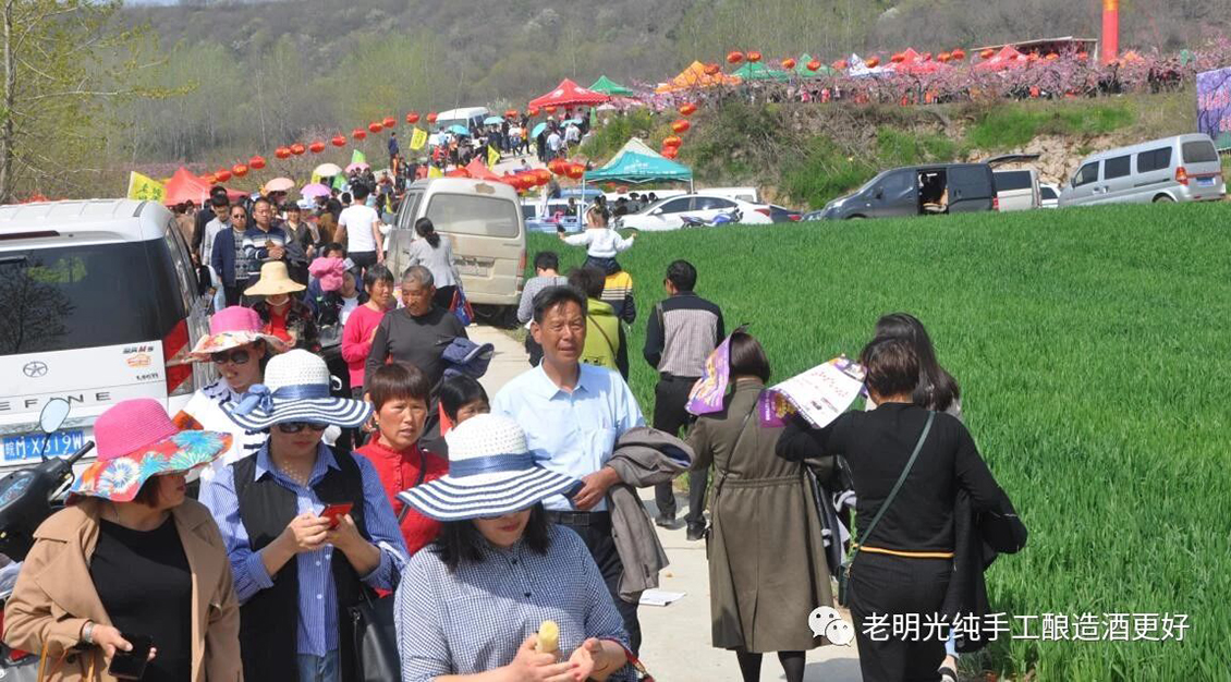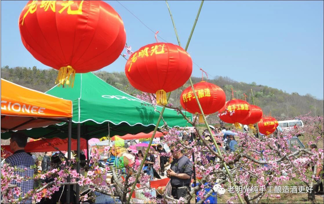9時,開幕式現(xiàn)場人潮涌動,地面老明光彩旗迎風招展,空中明酒大紅燈籠高高掛,臺上歌舞表演精彩紛呈,桃林小徑旗袍走秀時尚典雅,游客們徜徉花海,頻頻拍照。桃花節(jié)主會場的互動猜謎、尋福袋、套吉祥(套圈)等互動環(huán)節(jié)也吸引廣大游客積極參與。