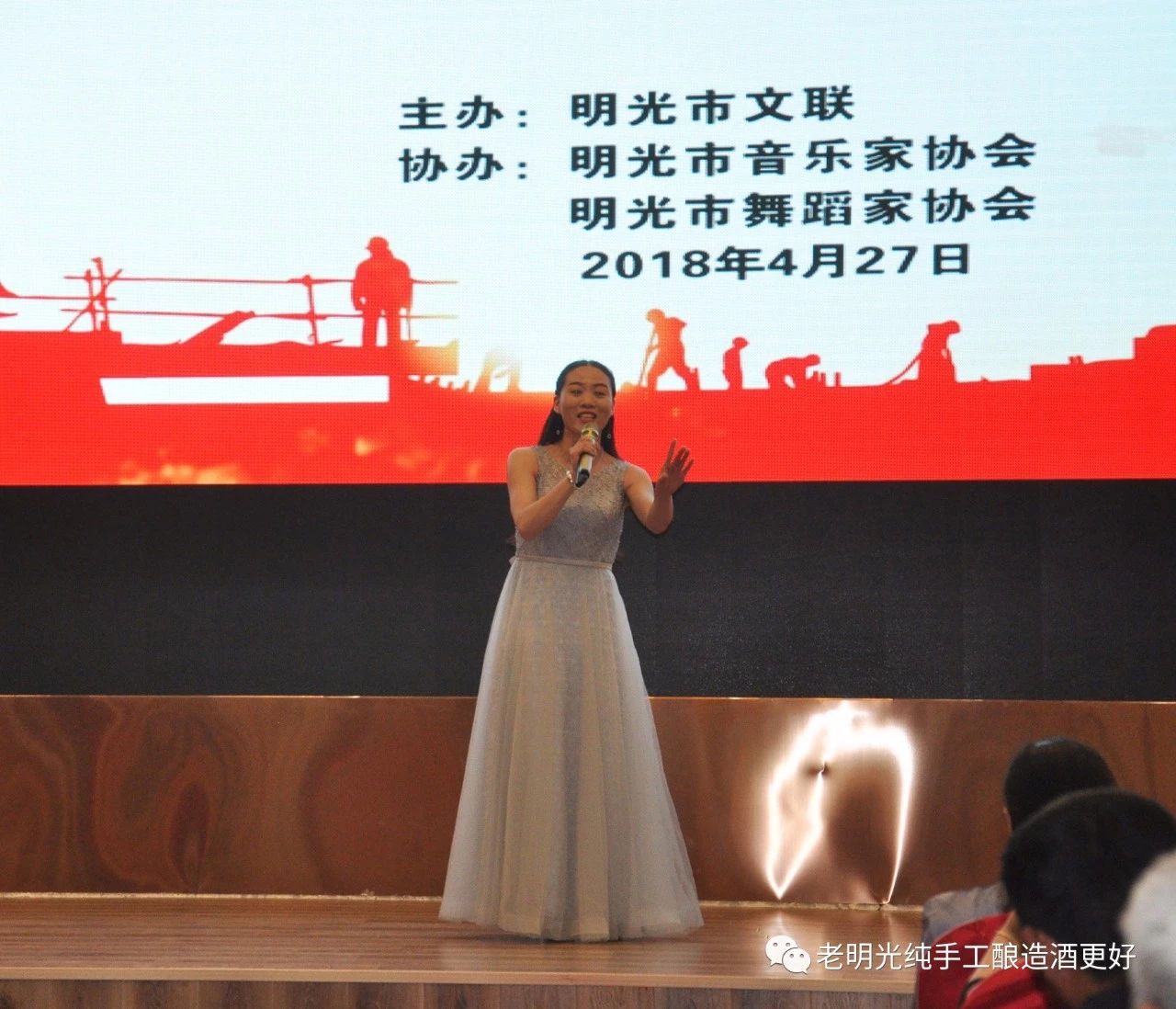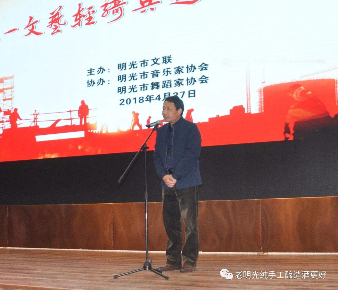 在“五一”國際勞動節(jié)即將到來之際,由明光市文聯(lián)主辦,明光市音樂家、舞蹈家協(xié)會協(xié)辦的“慶五一文藝輕騎兵走進(jìn)明光酒業(yè)”專場演出,在明光酒業(yè)御明樓大酒店隆重舉行。明光酒業(yè)300多名不在班干部員工及部分老明光經(jīng)銷商觀看了演出。受總經(jīng)理鞏建委托明光酒業(yè)黨委副書記龐宗生致歡迎詞、明光市文聯(lián)主席任亞弟發(fā)表“明光文藝輕騎兵 企業(yè)鄉(xiāng)村軍營行”的主題講話。