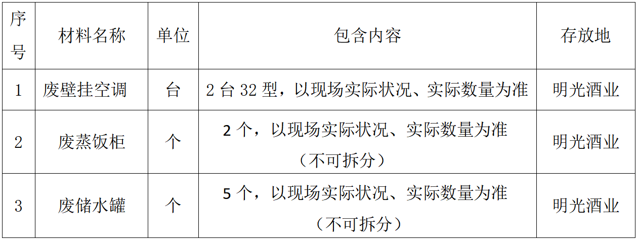 現對安徽明光酒業有限公司一批廢舊物資公開出售,具體出售事宜如下: