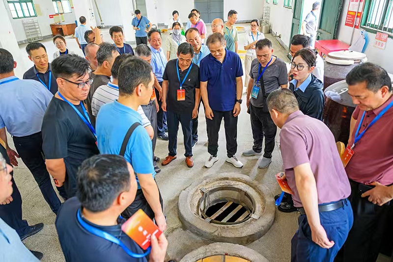 當天下午,來自全省各地的媒體總編以及評委和記者們,踏上了探訪明光酒業(yè)的旅程。穿過郁郁蔥蔥的廠區(qū),首先映入眼簾的是那古樸而莊嚴的釀酒車間,空氣中彌漫著濃郁的酒香,仿佛在訴說著一段段關(guān)于酒與文化的傳奇。