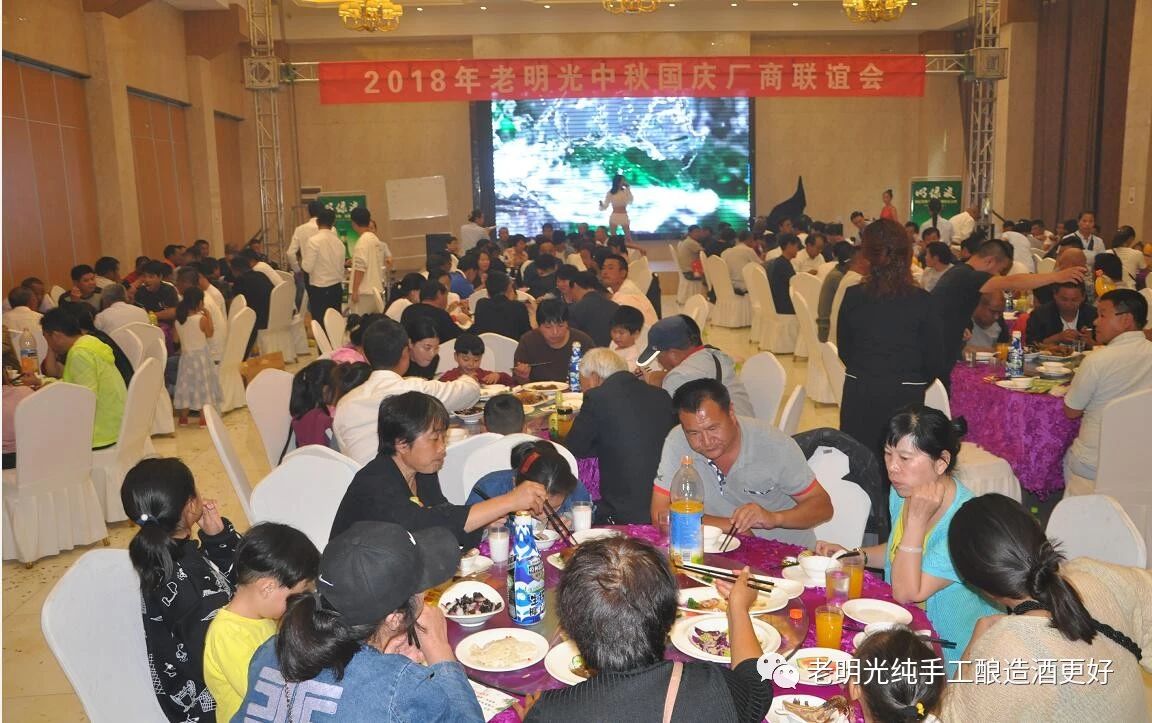2018年10月6日,明光酒業(淮北)中秋國慶廠商聯誼會,在淮北市碧水山莊隆重舉行。明光酒業高級政工師、銷售公司黨支部書記錢軍,明酒淮北辦事處主任宋樹金及淮北市九里香商貿公司董事長劉燕 及來自淮北各級經銷商370余人參加了會議。