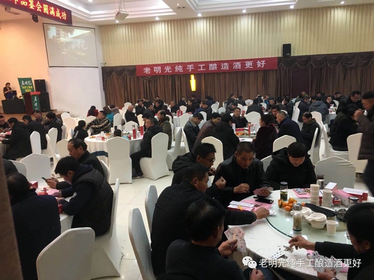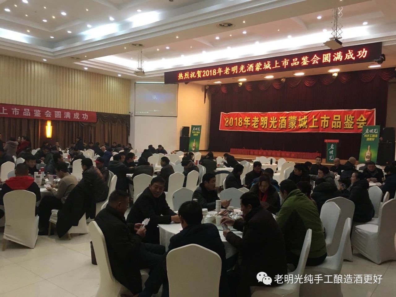 2018年12月16日,2018年老明光蒙城上市發(fā)布及品鑒會在蒙城鴻業(yè)國際大酒店如期舉行,明光酒業(yè)銷售公司黨支部書記錢軍、明酒淮亳辦事處主任宋樹金、蒙城富華商貿經理劉振峰及蒙城相關部門領導和鄉(xiāng)鎮(zhèn)老明光經銷商代表160多人參加了品鑒會。