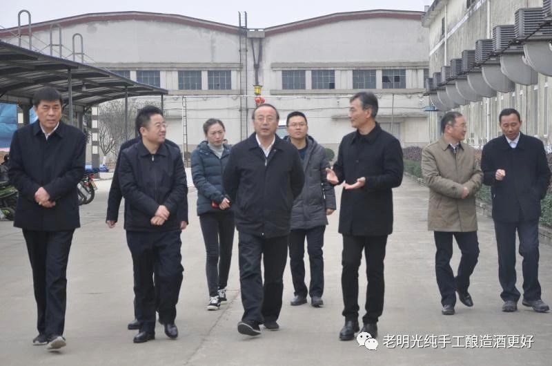 元月29日,滁州市委書(shū)記張祥安、政協(xié)主席汪建忠、滁州市副市長(zhǎng)許光友在明光市委書(shū)記王玨等領(lǐng)導(dǎo)陪同下蒞臨明光酒業(yè)考察指導(dǎo)工作。明光酒業(yè)總經(jīng)理鞏建向張書(shū)記等領(lǐng)導(dǎo)一行匯報(bào)了近年來(lái)明酒整體工作;詳細(xì)匯報(bào)了聚焦品牌塑造形象、保證質(zhì)量提升服務(wù)、加強(qiáng)技改保障市場(chǎng)的具體做法;介紹了建設(shè)明酒文化公園、明酒酒文化博物館及明酒未來(lái)發(fā)展目標(biāo)。